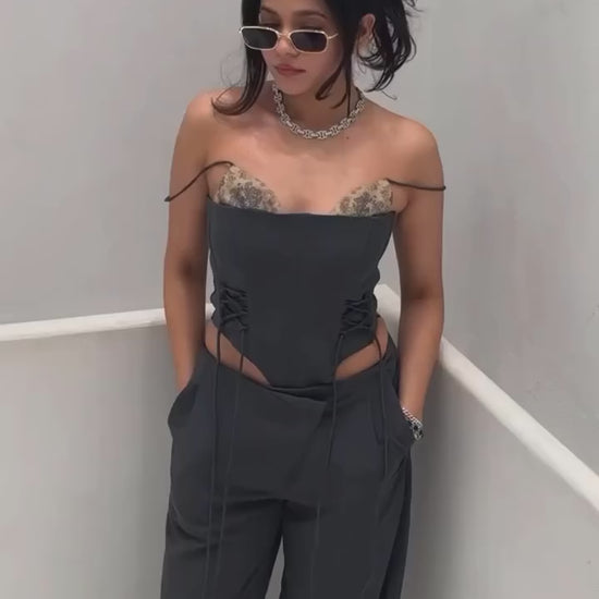 The Bunny Ears Corset Top challenges fashion norms by celebrating visible lingerie as intentional style. Designed with adjustable back smocking for flexible fit security, it empowers wearers to embrace self-expression through exposed bra straps as deliberate fashion statements.