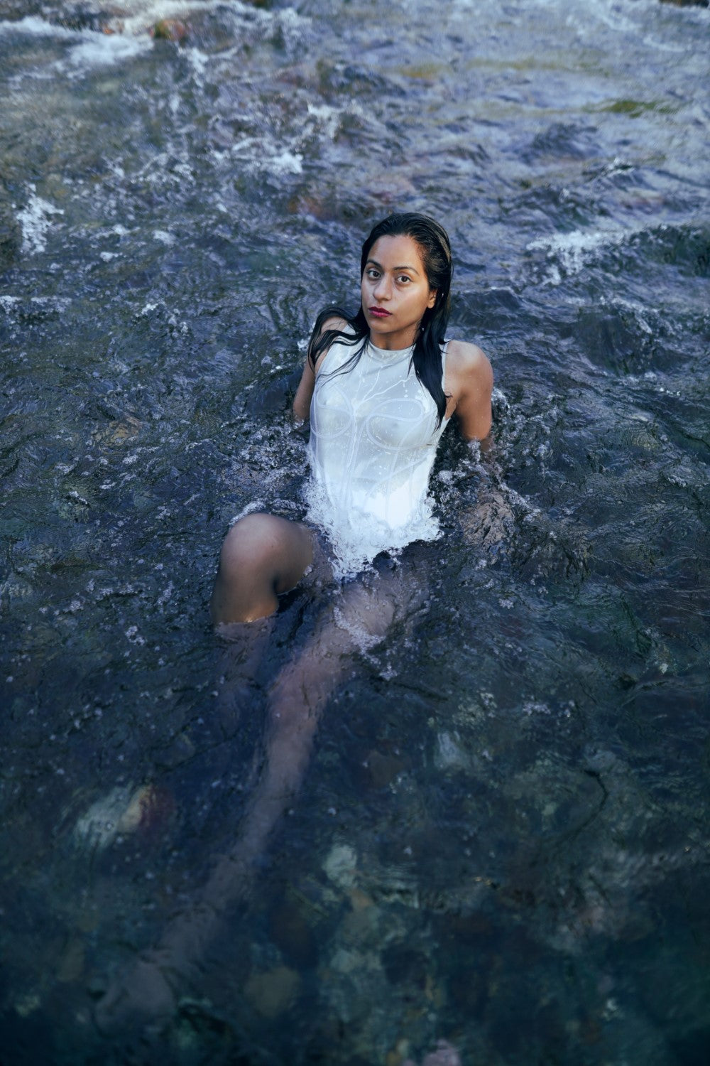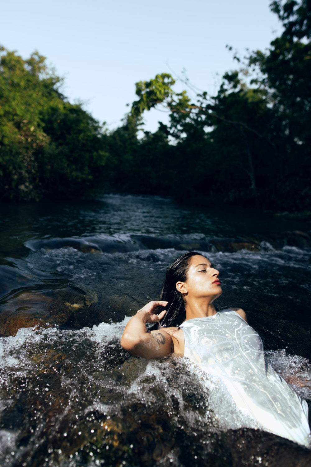 Reflective contour bodysuit, crafted with corset-like embroidery to sculpt your curves. Snap a pic with flash and watch it shine. You can style this look with your denims or any skirt.