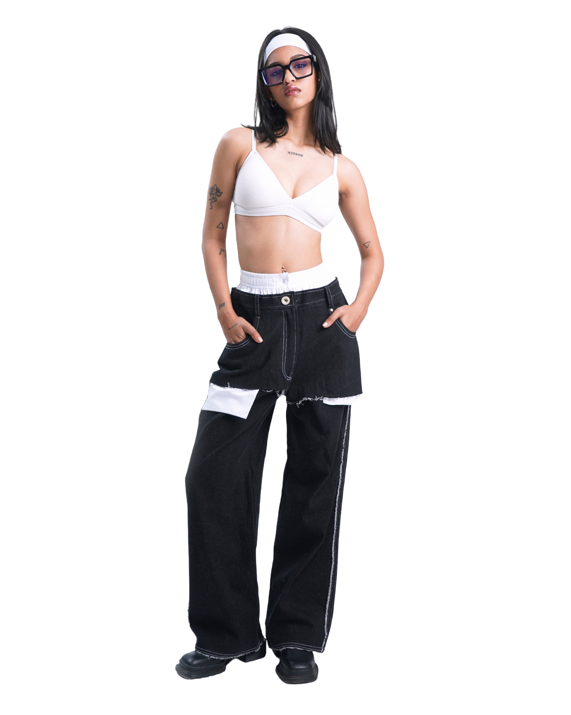New Age Baggy Denim Pants blend streetwear edge with comfort, featuring a sweatpant-inspired waistband and deconstructed pocket detailing. The intentionally exposed pocket bags and back pocket creases (inspired by natural stretch marks) create an avant-garde take on classic denim.
