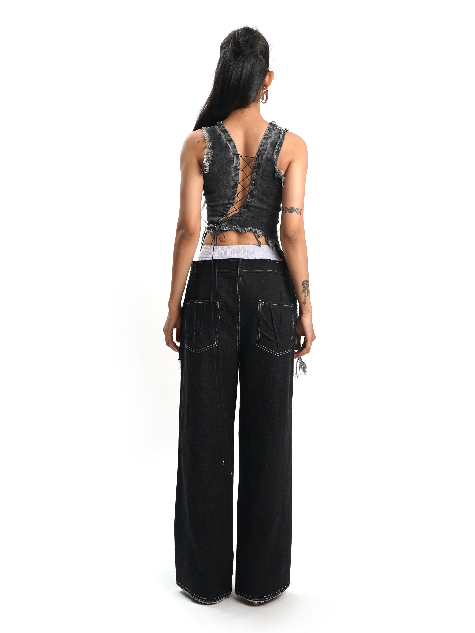 layered detailing. Designed with a tie-up back and Mamkam’s signature ribbon accents on both sides, it gives off a casual, carefree vibe. Perfect for music festivals or stage performances.