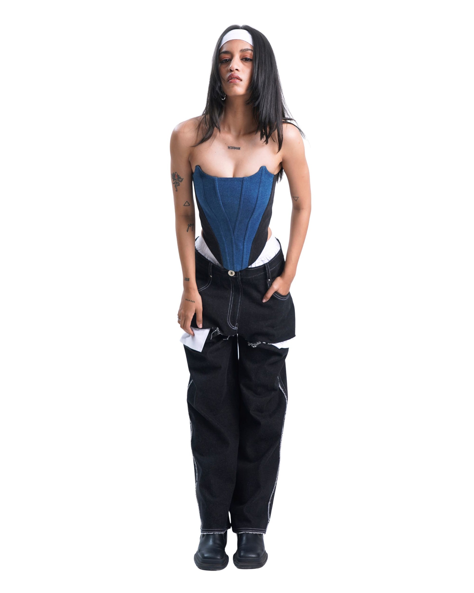 The Two Tone Denim Corset combines structure and comfort with its dual-tone denim construction. Featuring an adjustable back tie closure, it sculpts your waist while offering flexible fit adjustments. The cotton-lined interior ensures all-day comfort.